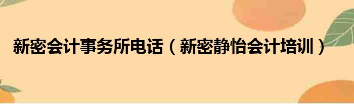 导读 大家好,今天小六子来为大家解答以下的问题,关于新密会计事务所电话,新密静怡会计培训这个很多人还不知道,现在让我们一起来看看吧!1、你