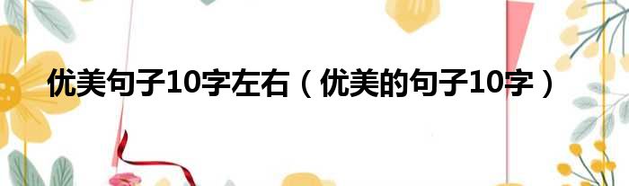 导读 大家好,今天小六子来为大家解答以下的问题,关于优美句子10字左右,优美的句子10字这个很多人还不知道,现在让我们一起来看看吧!1、生活是