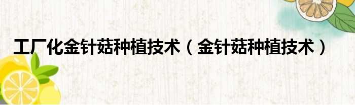 大家好,今天小六子来为大家解答以下的问题,关于工厂化金针菇种植技术,金针菇种植技术这个很多人还不知道,现在让我们一起来看看吧!