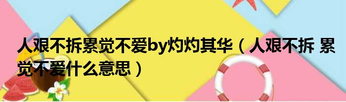 大家好,今天小六子来为大家解答以下的问题,关于人艰不拆累觉不爱by灼灼其华,人艰不拆 累觉不爱什么意思这个很多人还不知道,现在让我们一起来看看吧!