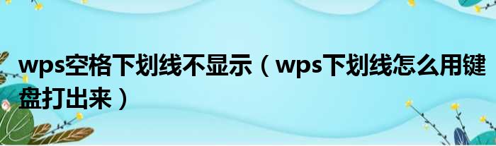 wps空格下划线不显示(wps下划线怎么用键盘打出来)