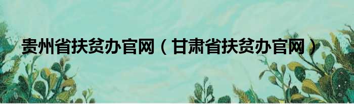 贵州省扶贫办官网(甘肃省扶贫办官网)