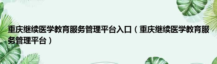重庆继续医学教育服务管理平台入口(重庆继续医学教育服务管理平台)
