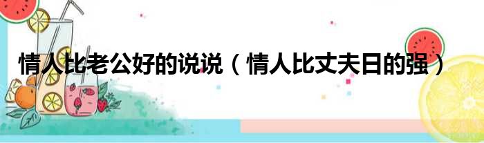 导读 大家好,今天小六子来为大家解答以下的问题,关于情人比老公好的说说,情人比丈夫日的强这个很多人还不知道,现在让我们一起来看看吧!1、怕