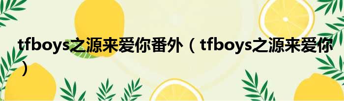 大家好,今天小六子来为大家解答以下的问题,关于tfboys之源来爱你番外,tfboys之源来爱你这个很多人还不知道,现在让我们一起来看看吧!