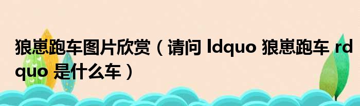 大家好,今天小六子来为大家解答以下的问题,关于狼崽跑车图片欣赏,请问 ldquo 狼崽跑车 rdquo 是什么车这个很多人还不知道,现在让我们一起来看看吧!