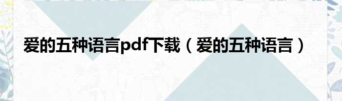 导读 大家好,今天小六子来为大家解答以下的问题,关于爱的五种语言pdf下载,爱的五种语言这个很多人还不知道,现在让我们一起来看看吧!1、一、