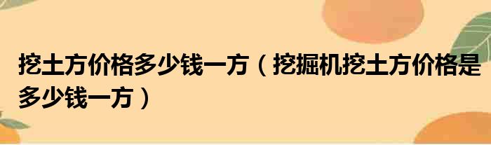 导读 大家好,今天小六子来为大家解答以下的问题,关于挖土方价格多少钱一方,挖掘机挖土方价格是多少钱一方这个很多人还不知道,现在让我们一起
