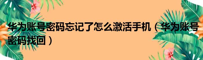 华为账号密码忘记了怎么激活手机(华为账号密码找回)