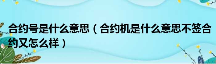 合约号是什么意思(合约机是什么意思不签合约又怎么样)
