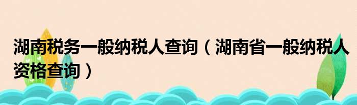 湖南税务一般纳税人查询(湖南省一般纳税人资格查询)