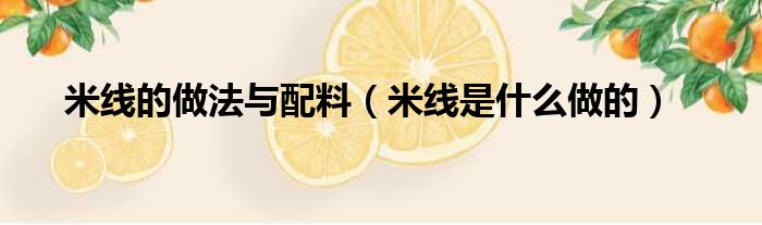 大家好,今天小六子来为大家解答以下的问题,关于米线的做法与配料,米线是什么做的这个很多人还不知道,现在让我们一起来看看吧!