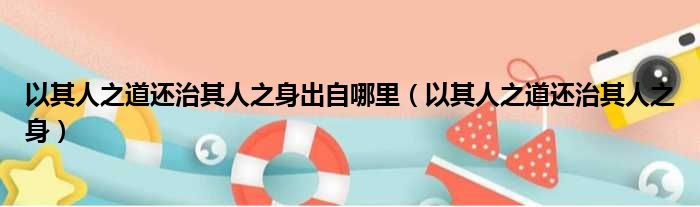 导读 大家好,今天小六子来为大家解答以下的问题,关于以其人之道还治其人之身出自哪里,以其人之道还治其人之身这个很多人还不知道,现在让我们