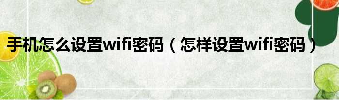 手机怎么设置wifi密码(怎样设置wifi密码)