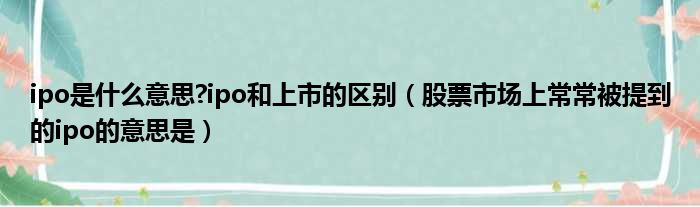 ipo是什么意思?ipo和上市的区别(股票市场上常常被提到的ipo的意思是)