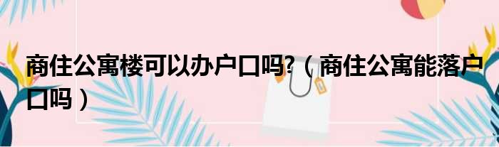 商住公寓楼可以办户口吗?(商住公寓能落户口吗)