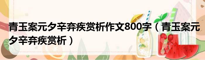 青玉案元夕辛弃疾赏析作文800字(青玉案元夕辛弃疾赏析)