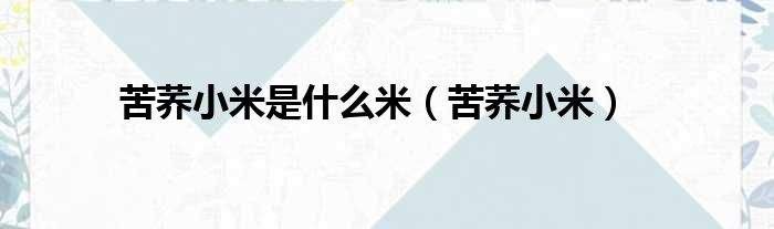 苦荞小米是什么米(苦荞小米)