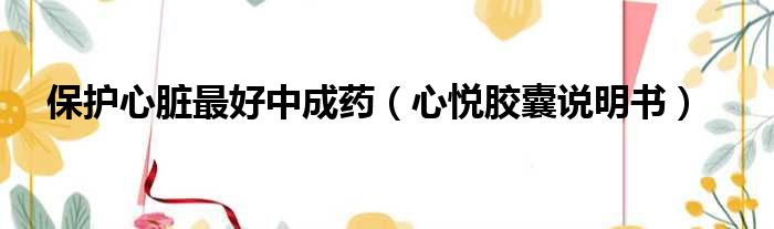 保护心脏最好中成药(心悦胶囊说明书)