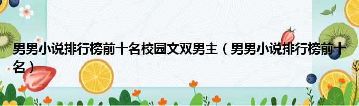 男男小说排行榜前十名校园文双男主(男男小说排行榜前十名)