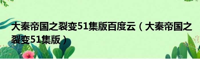 导读 大家好,今天小六子来为大家解答以下的问题,关于大秦帝国之裂变51集版百度云,大秦帝国之裂变51集版这个很多人还不知道,现在让我们一起来