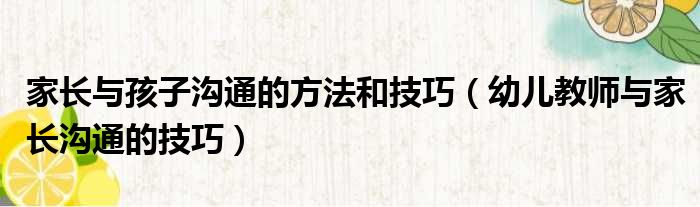 家长与孩子沟通的方法和技巧(幼儿教师与家长沟通的技巧)