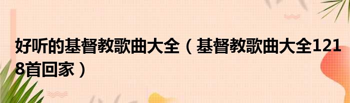 导读 大家好,今天小六子来为大家解答以下的问题,关于好听的基督教歌曲大全,基督教歌曲大全1218首回家这个很多人还不知道,现在让我们一起来看