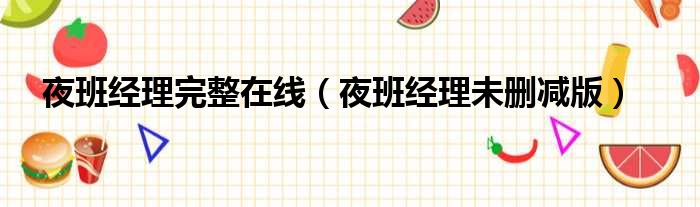 夜班经理完整在线(夜班经理未删减版)