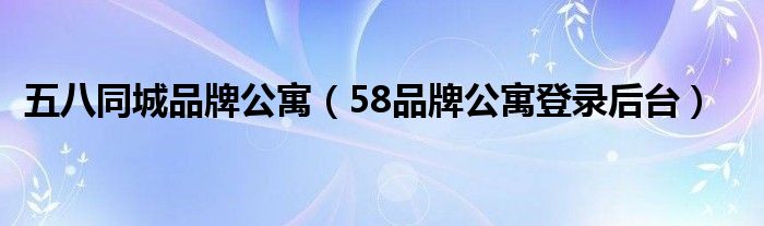 大家好,今天小六子来为大家解答以下的问题,关于五八同城品牌公寓,58品牌公寓登录后台这个很多人还不知道,现在让我们一起来看看吧!