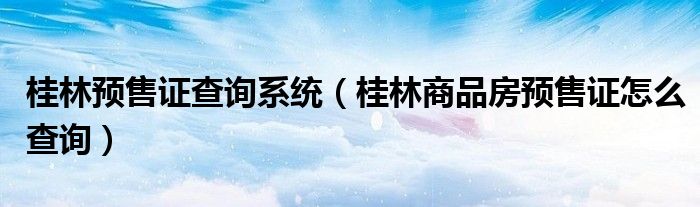 导读 大家好,今天小六子来为大家解答以下的问题,关于桂林预售证查询系统,桂林商品房预售证怎么查询这个很多人还不知道,现在让我们一起来看看