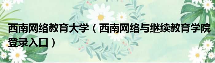 导读 大家好,今天小六子来为大家解答以下的问题,关于西南网络教育大学,西南网络与继续教育学院登录入口这个很多人还不知道,现在让我们一起来