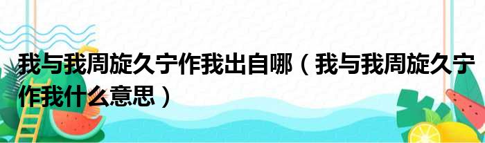 导读 大家好,今天小六子来为大家解答以下的问题,关于我与我周旋久宁作我出自哪,我与我周旋久宁作我什么意思这个很多人还不知道,现在让我们一