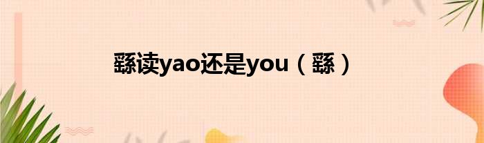 大家好,今天小六子来为大家解答以下的问题,关于繇读yao还是you,繇这个很多人还不知道,现在让我们一起来看看吧!