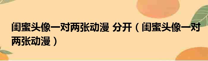 闺蜜头像一对两张动漫 分开(闺蜜头像一对两张动漫)