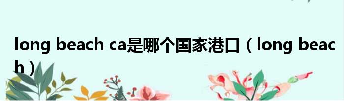 导读 大家好,今天小六子来为大家解答以下的问题,关于long beach ca是哪个国家港口,long beach这个很多人还不知道,现在让我们一起来看看吧