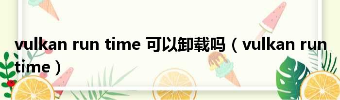 vulkan run time 可以卸载吗(vulkan run time)