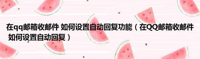 在qq邮箱收邮件 如何设置自动回复功能(在QQ邮箱收邮件 如何设置自动回复)