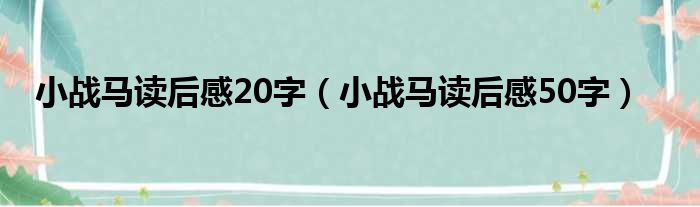 导读 大家好,今天小六子来为大家解答以下的问题,关于小战马读后感20字,小战马读后感50字这个很多人还不知道,现在让我们一起来看看吧!1、“书