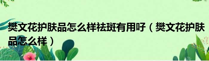 樊文花护肤品怎么样祛斑有用吇(樊文花护肤品怎么样)