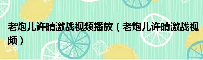 老炮儿许晴激战视频播放(老炮儿许晴激战视频)