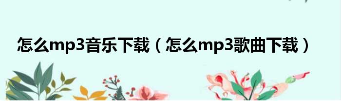 怎么mp3音乐下载(怎么mp3歌曲下载)