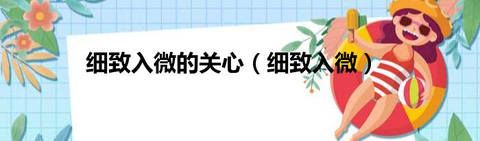 导读 大家好,今天小六子来为大家解答以下的问题,关于细致入微的关心,细致入微这个很多人还不知道,现在让我们一起来看看吧!1、体察入微:细致
