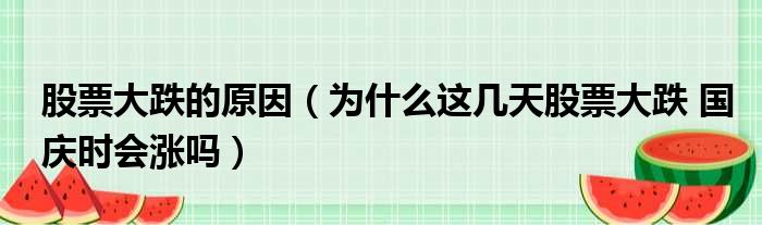 股票大跌的原因(为什么这几天股票大跌 国庆时会涨吗)