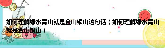 如何理解绿水青山就是金山银山这句话(如何理解绿水青山就是金山银山)