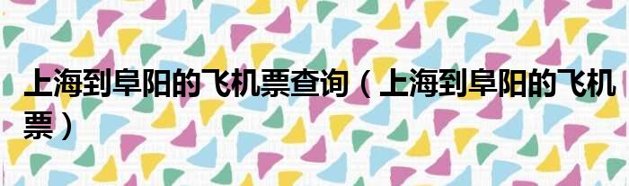 上海到阜阳的飞机票查询(上海到阜阳的飞机票)