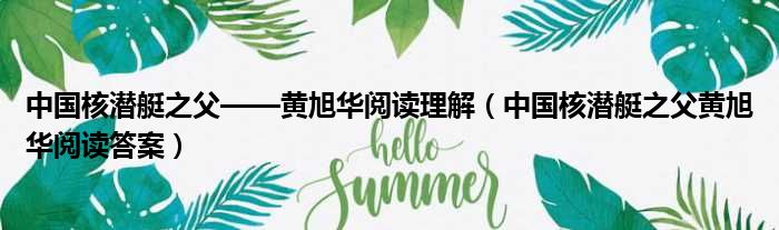 中国核潜艇之父——黄旭华阅读理解(中国核潜艇之父黄旭华阅读答案)