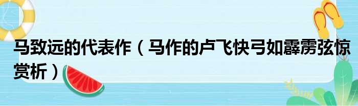 导读 大家好,今天小六子来为大家解答以下的问题,关于马致远的代表作,马作的卢飞快弓如霹雳弦惊赏析这个很多人还不知道,现在让我们一起来看看