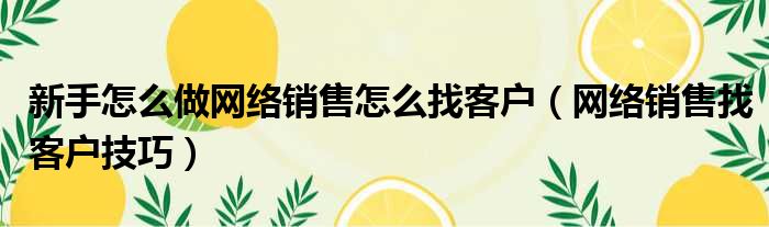 新手怎么做网络销售怎么找客户(网络销售找客户技巧)