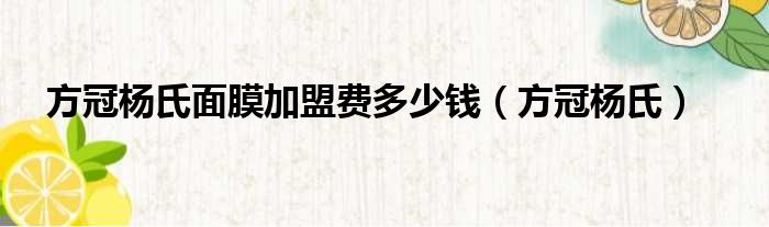 方冠杨氏面膜加盟费多少钱(方冠杨氏)