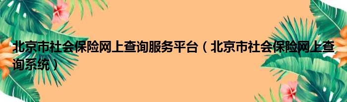 北京市社会保险网上查询服务平台(北京市社会保险网上查询系统)